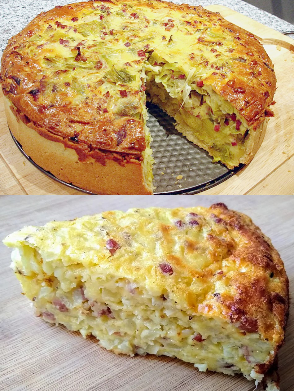 Składnik: 60 g masła 3 jajka (on) 60 g mąki 500 g cebuli pokrojonej w kostkę 125 g sera, startego na tarce 125 g boczku, trochę kminku pokrojonego w kostkę Przygotowanie: