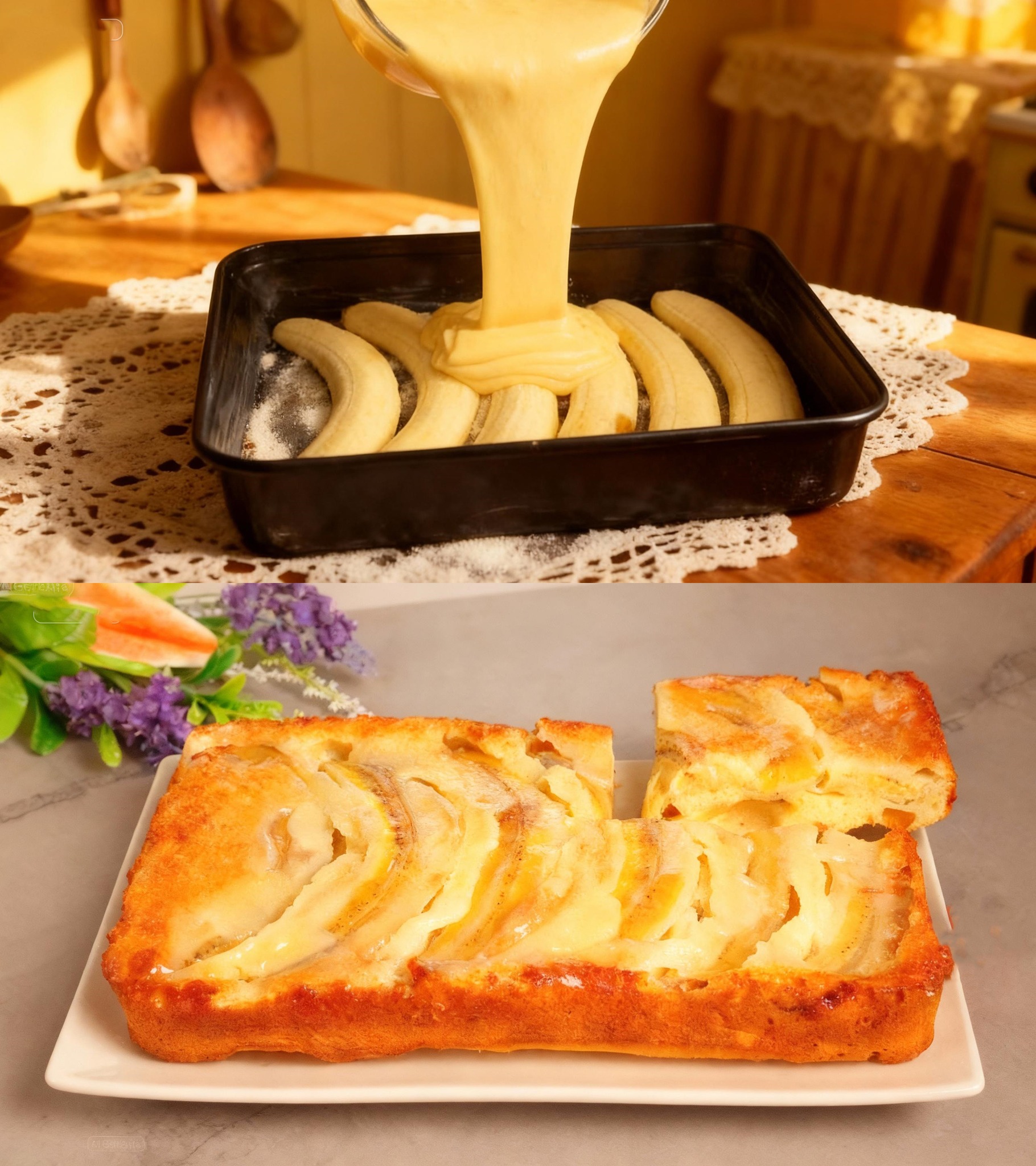 Składnik: 2 jajka. 1 łyżeczka cukru waniliowego 1 szczypta soli 80 g cukru (4 łyżki stołowe) 60 ml oleju słonecznikowego (2/5 szklanki) 125 g jogurtu (1/2 szklanki) 200 g mąki (1 + 1/2 szklanki) 2 łyżeczki sody oczyszczonej 3 banany Kształt 27 x 18 cm 30 g masła (2 łyżki stołowe) 2 łyżki cukru Przygotowanie: