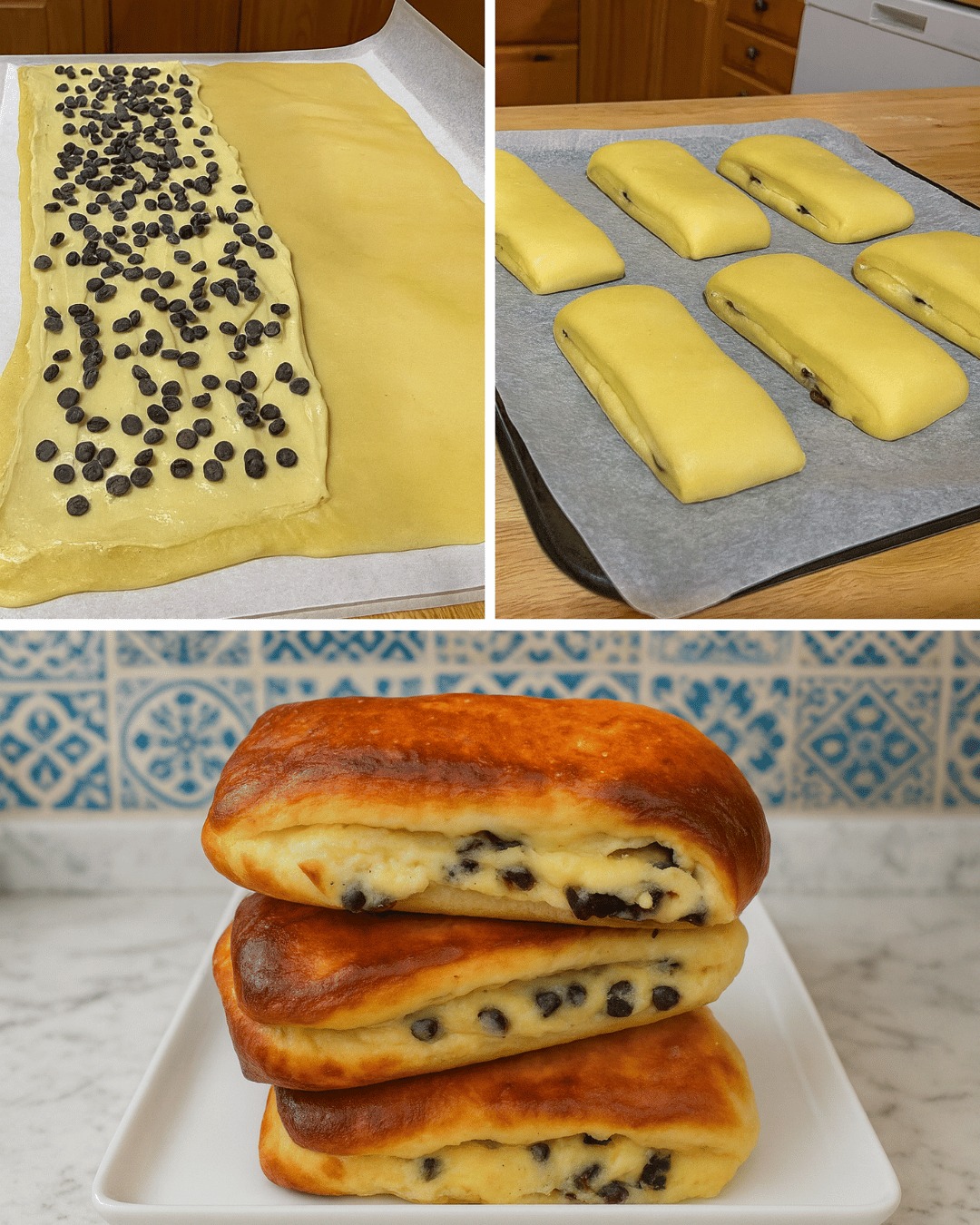 Szwajcarska brioche, zwana również chlebem szwajcarskim, to niesamowicie pyszne ciasto wykonane z miękkiego ciasta brioche, nadziewane gładkim kremem i rozpływającymi się kawałkami czekolady 🤤.