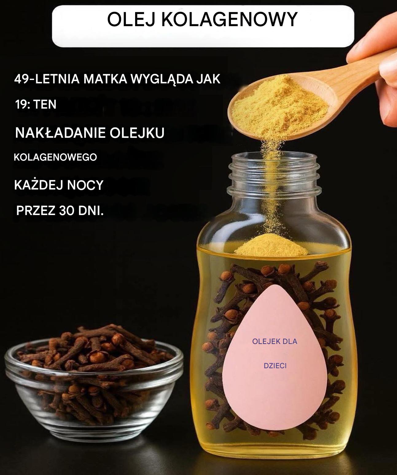 Są porady dotyczące urody i dobrego samopoczucia, które odkrywamy niemal przypadkiem… a potem stają się naprawdę niezbędne. Właśnie to dzieje się z tym zaskakującym połączeniem delikatnego, lekkiego i łatwo dostępnego olejku dla dzieci – olejku kolagenowego, kurkumy i goździków, tych drobnych suszonych kwiatów o ciepłym i korzennym zapachu. Połączenie, które może wydawać się nieprawdopodobne, ale działa cuda, tworząc przyjemny, pachnący, odżywczy i zaskakująco łatwy w przygotowaniu domowy olejek do masażu. Zanim zdradzimy przepis, zobaczmy, dlaczego te składniki tak dobrze się ze sobą łączą.