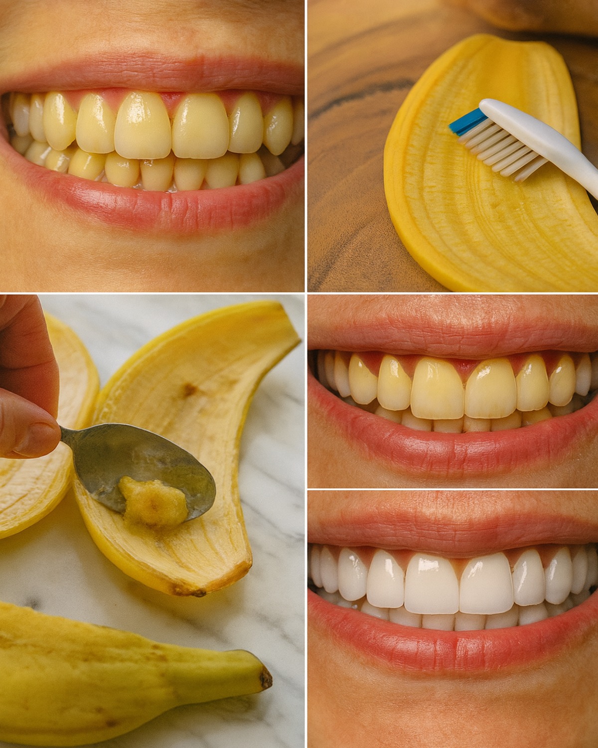 Skórki od banana zawierają potas, magnez i wiele innych minerałów, które korzystnie wpływają na zdrowie zębów. Ich naturalne właściwości wybielające pomagają usuwać przebarwienia spowodowane kawą, czerwonym winem lub tytoniem. A co najważniejsze – są w pełni naturalne i bez chemikaliów!
